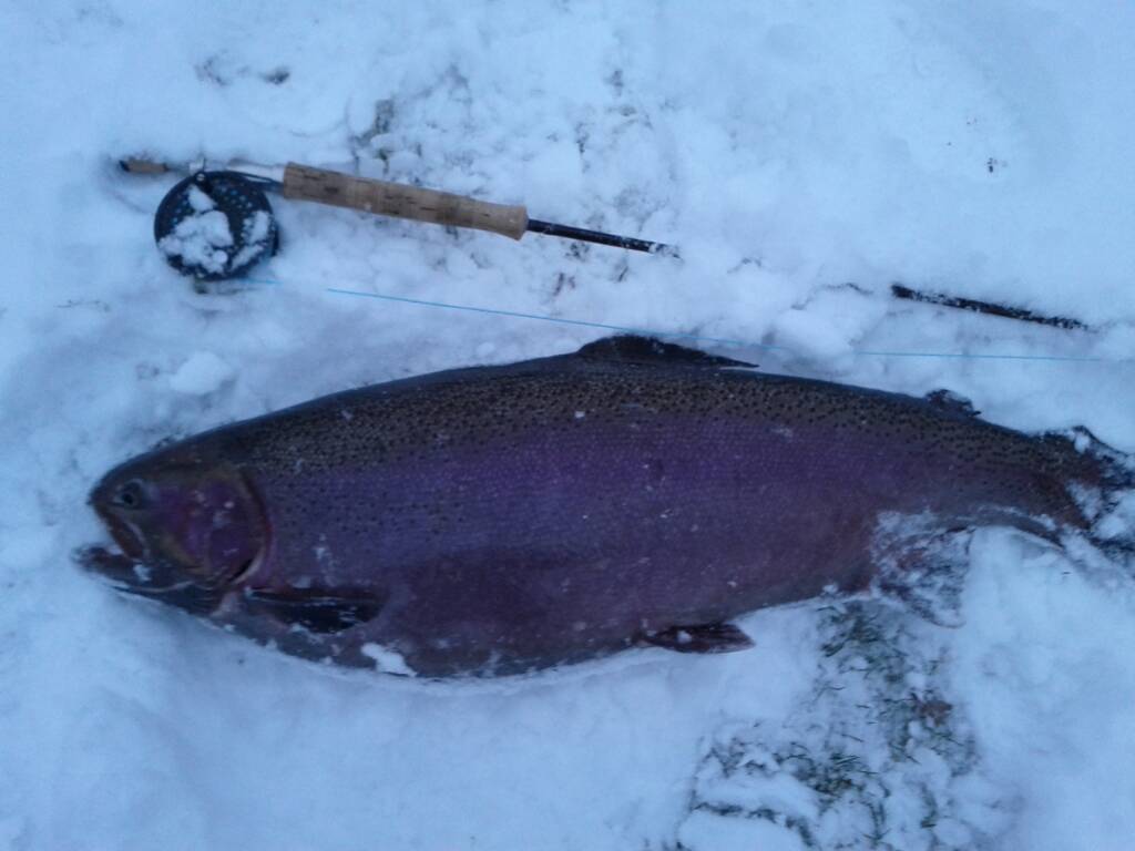Söndagen den 3 mars, chrome winter steelhead 8-9 lbs North Umpqua, Oregon. Flugan är Copper Prom dress (ser ut som en flashfluga för gädda i kopparfärg  :D ).