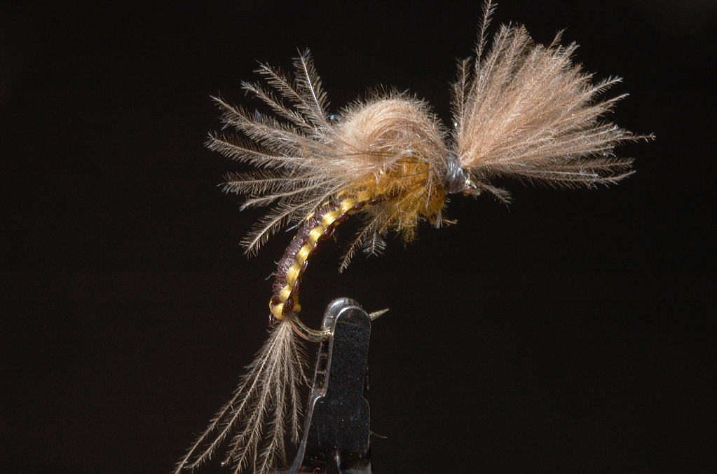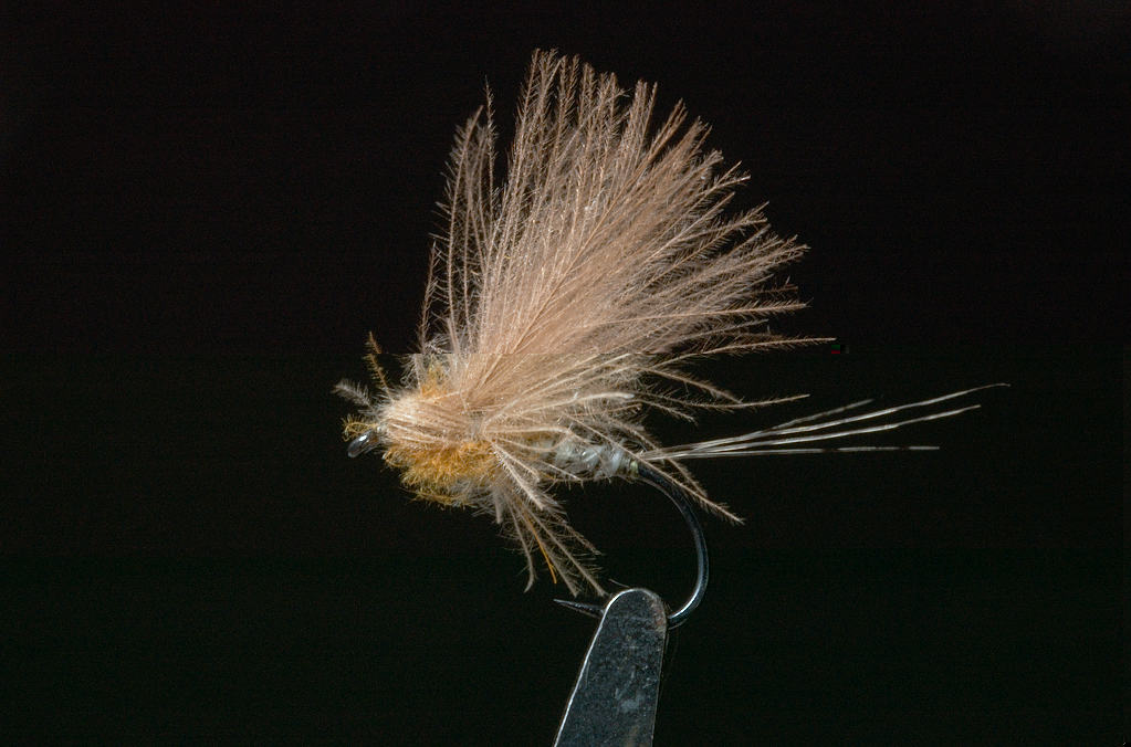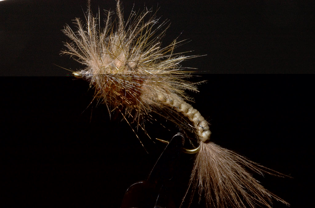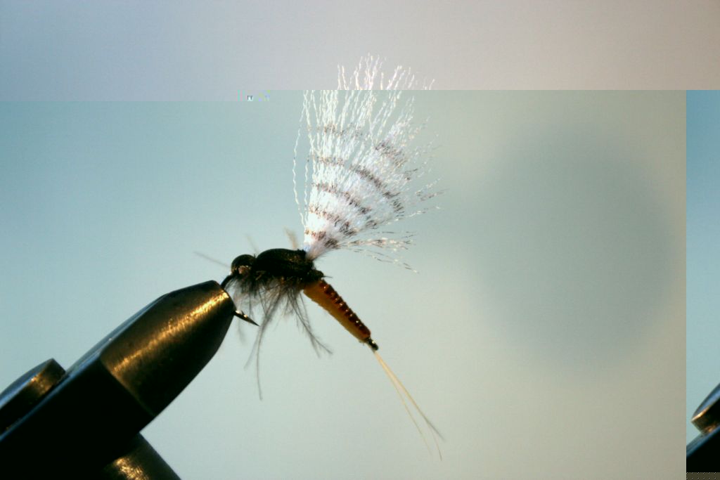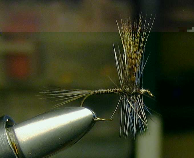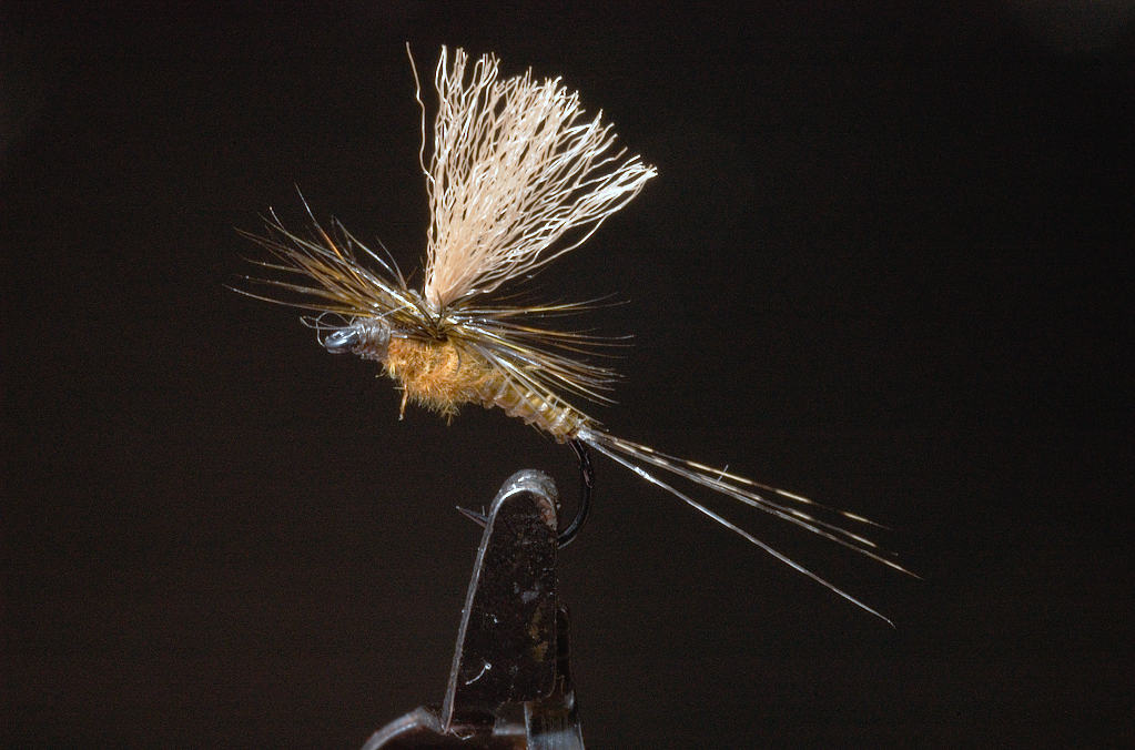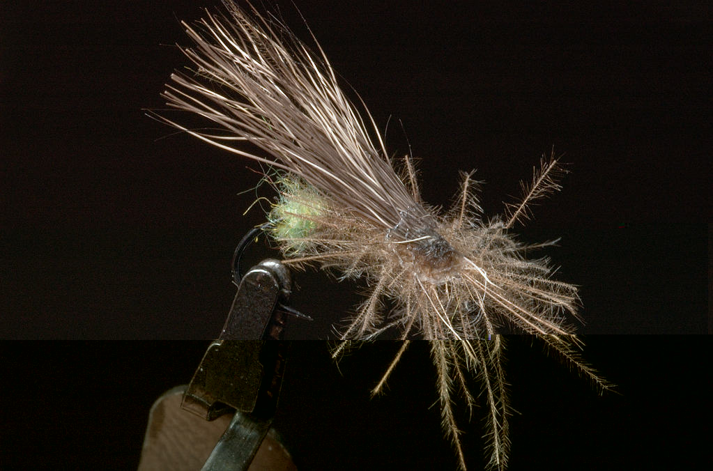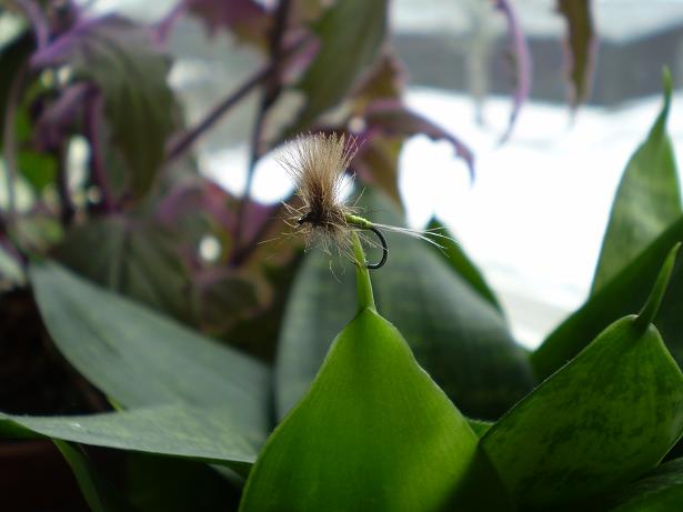 Her er en ekte Älg hair caddis ;D ;D ;D.....sett fra to vinkler :D :D......og med cdc parachute hackle......
